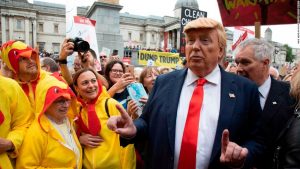 An international diplomat he is not, but at least he didn’t hold Her Majesty’s hand or try to play Kingmaker. He rolled out his family in all their plastic glory and used the moment to impress on the consciousness of those back home, no mind the truth denial. The protests didn’t bother him for a moment. Why would they when he only sees what he chooses to see?